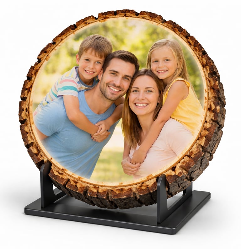 Ky wood slice i personalizuar me UV print dhe gravim laser është një kombinim perfekt mes natyrës dhe teknologjisë moderne. Fotografia juaj integrohet në mënyrë harmonike duke krijuar një vepër dekorative unike me karakter të ngrohtë dhe autentik.