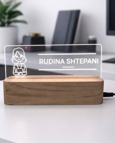 Ideale për zyra, klinika, institucione apo ambiente profesionale, kjo pllakë emri kombinon funksionalitetin me estetikën, duke reflektuar identitet dhe seriozitet..